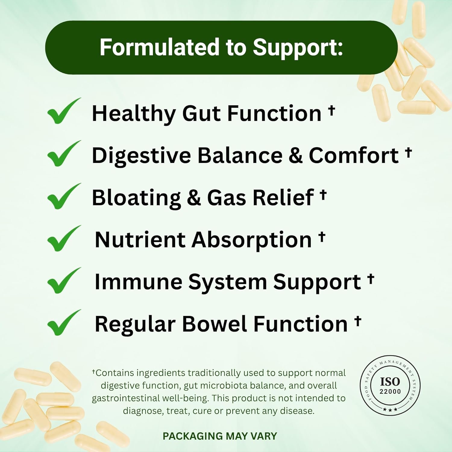 REDUCES BLOATING & GAS – Designed to relieve occasional bloating, gas and indigestion by aiding enzyme activity that breaks down food efficiently – helping you feel lighter and more comfortable after meals.
