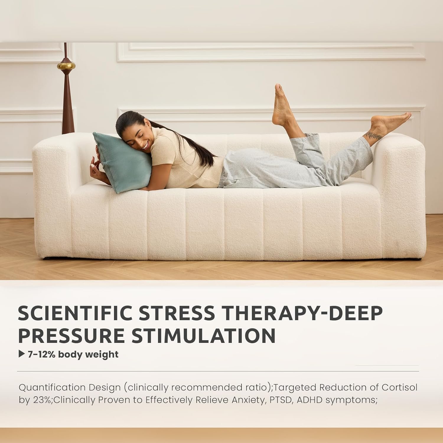 Perfect Size for All-day Use: Our weighted body pillows for adults are designed according to the scientific recommended ratio of 7-12% body weight, targeting a 23% reduction in cortisol. The right weight and size can naturally relieve stress and calm the mind whether you hug it or put it on your legs