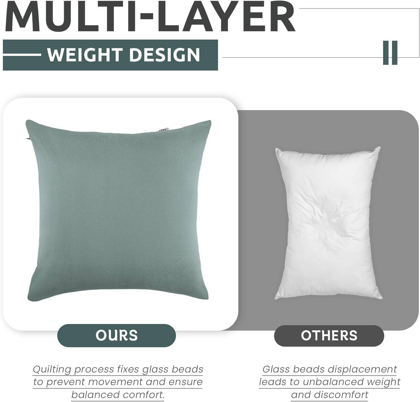 Balanced Comfort Experience: HZFAMZ body pillow use a unique quilting process to ensure that the glass beads are evenly distributed and fixed in the pillow core. There will be no feeling of weight accumulation when using the weighted pillow. The balanced weight brings more effective and lasting relief