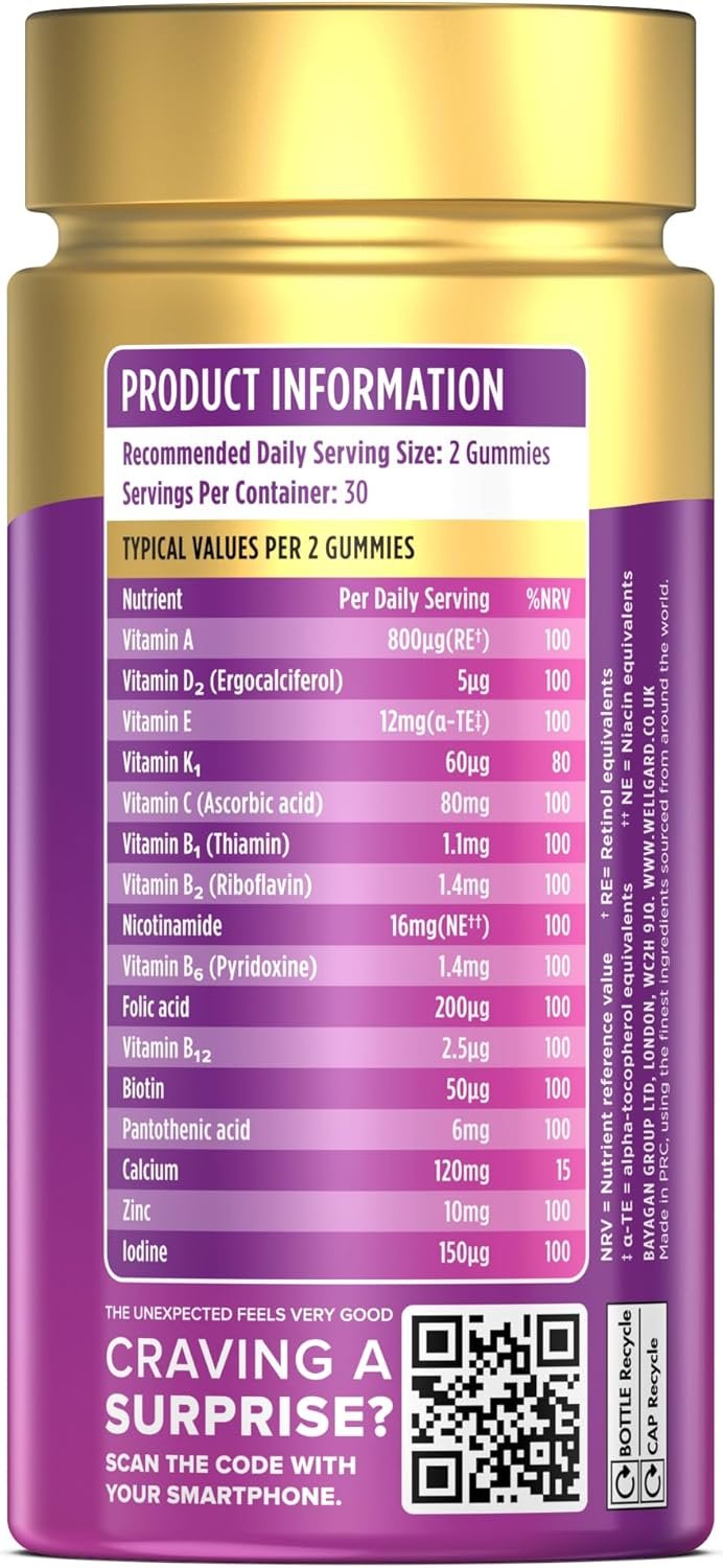 Wellgard Multi Vitamins for Women Over 50 Gummies – Supports Bone, Heart & Immune Health – Vitamins D3, B12, Calcium & More, Chewable Womens Multivitamins 50 Plus, No Iron Multivitamins