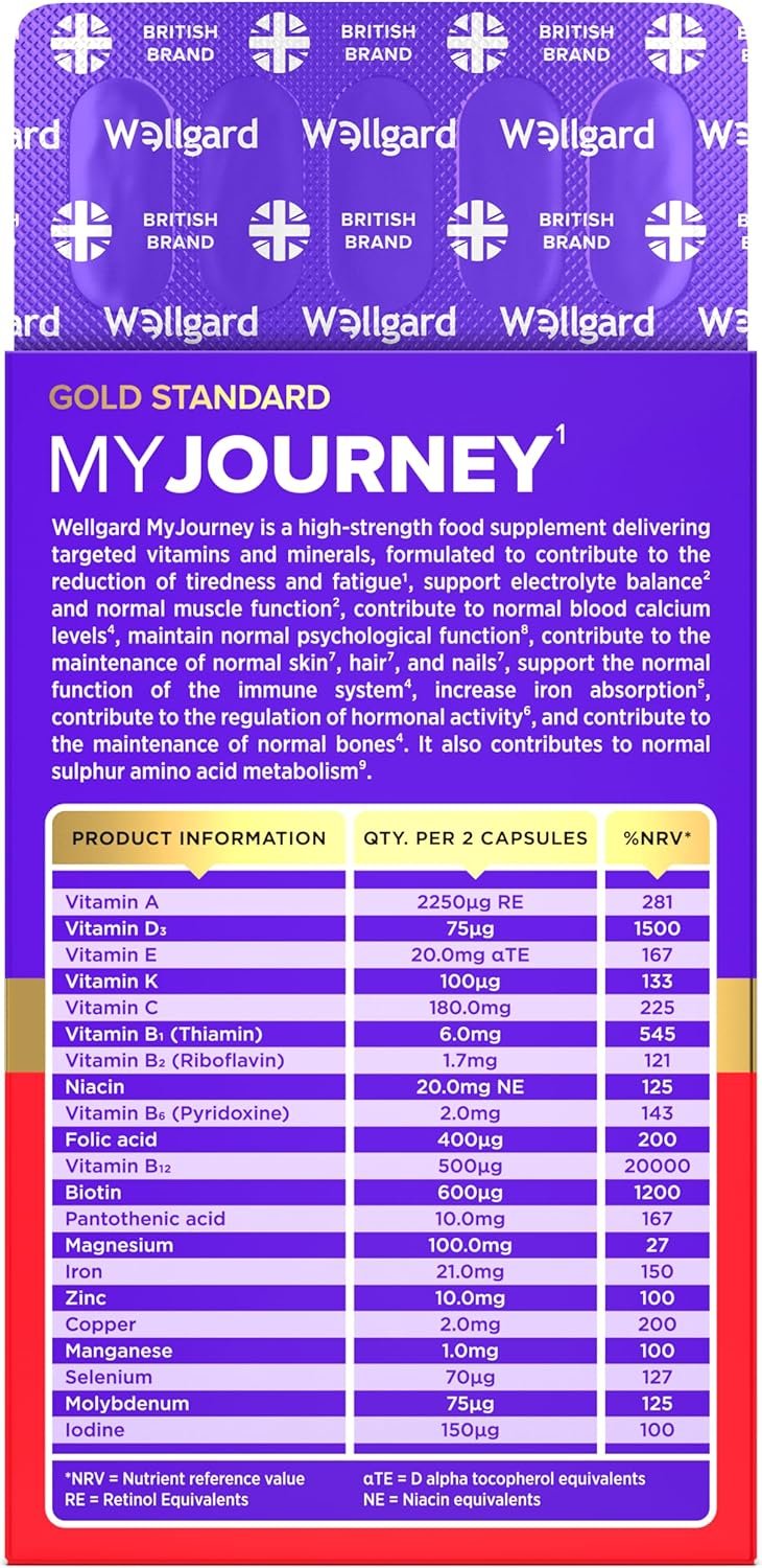 ★ ENERGY & VITALITY THAT LASTS: Tired of feeling drained? Wellgard My Journey’s powerful dose of Vitamin B₁₂ (20,000% NRV) supports the reduction of tiredness and fatigue, fuelling you with the natural, steady energy to approach each day with confidence.