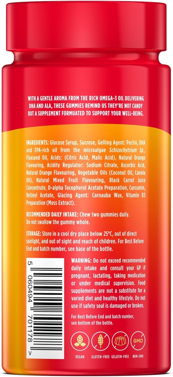 ★ YUMMY VEGAN OMEGA 3 GUMMIES – Omega 3s have never been tastier! Our vegan Omega 3 gummies have a delightful texture and natural flavour that taste great. Loaded with DHA and ALA, both essential Omega 3 Fatty Acids that support multiple health benefits.