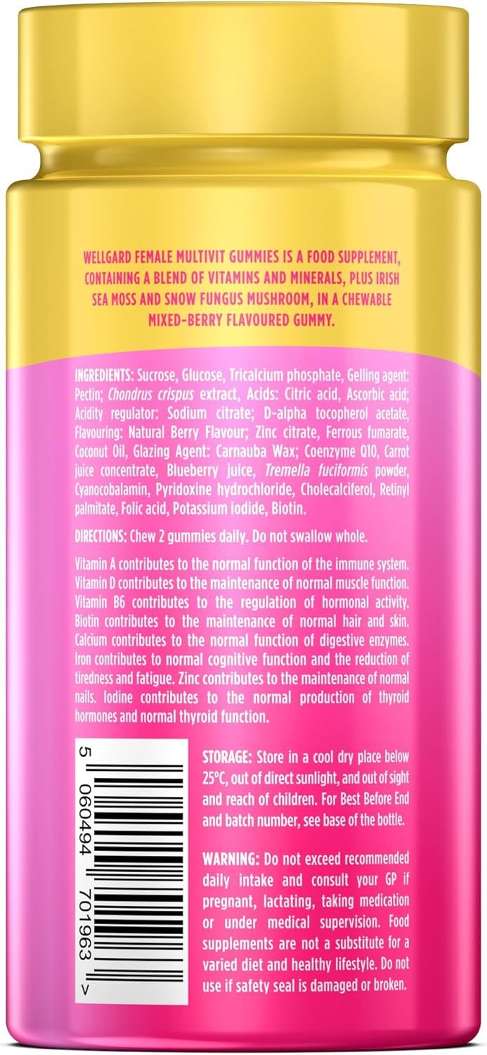 Wellgard Womens Multivitamins Gummies, Vegan, with B6, B12, C, D, Zinc & Biotin, Energy, Immunity, Skin, Hair & Nails, Hormonal Health, Female Multivitamins, 60 Gummies