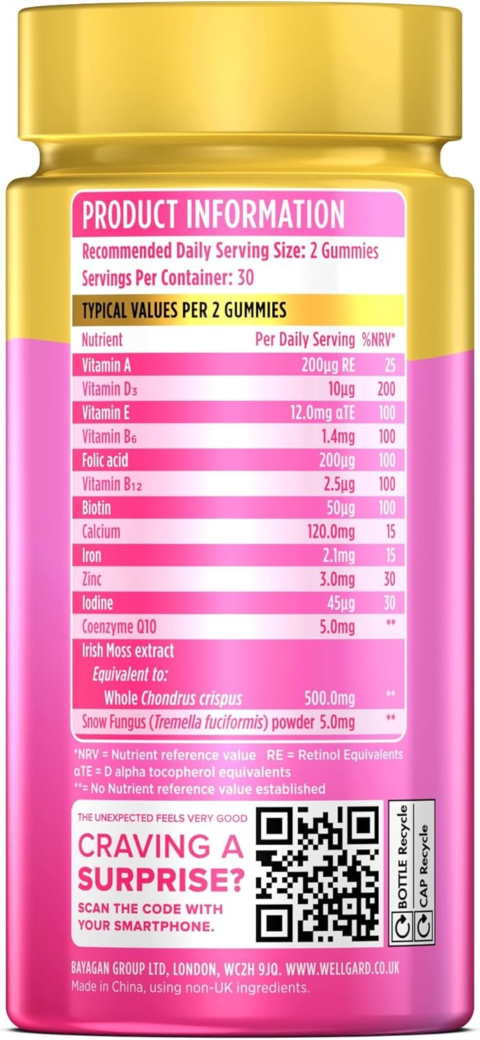 Meet the multivitamin women keep. Two mixed-berry gummies bring together essentials chosen for everyday life: Vitamin B6 (hormonal activity), B6/B12 (energy-yielding metabolism & reduction of tiredness and fatigue), Vitamin C/D & Zinc (immune function), Biotin & Zinc (skin, hair & nails), plus Iodine (thyroid & cognitive function). Vegan. Gelatine-free. Deliciously simple.