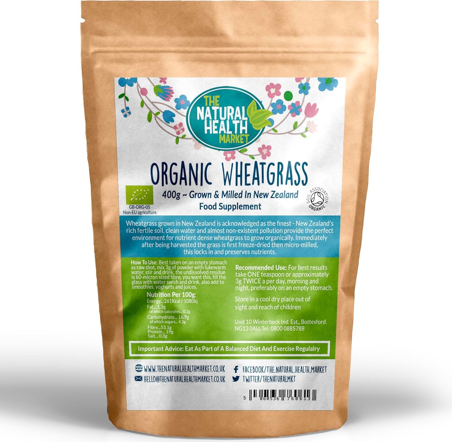 Wheatgrass Powder 400g Organic | Raw, Vegan & Gluten-Free | New Zealand-Grown Greens for Juices, Smoothies & Detox | Artisan UK Brand | The Natural Health Market | Small Batch Production