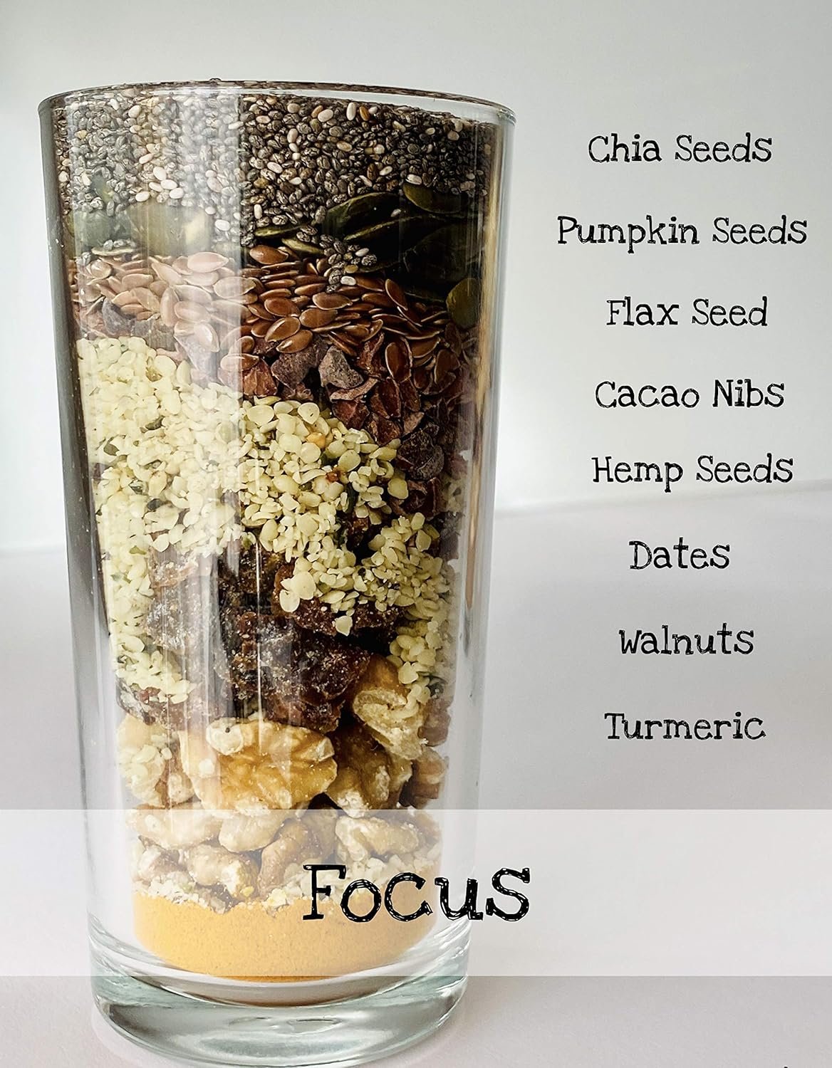 Chia Seeds Hemp Seeds Dates Walnuts Pumpkin Seeds Cacao Flax Seed Turmeric