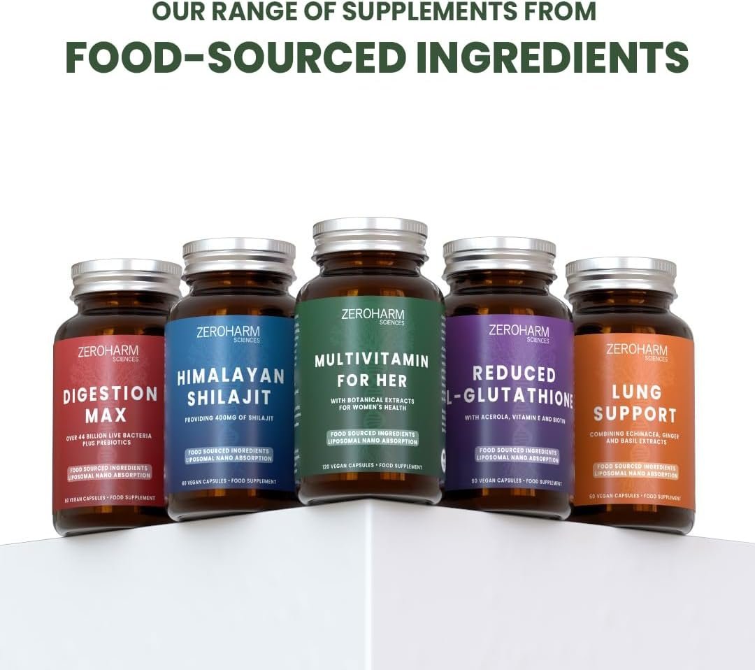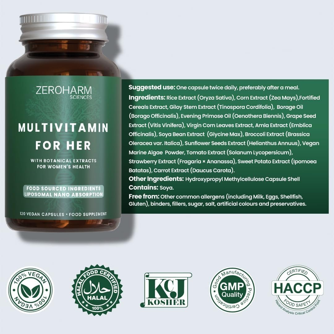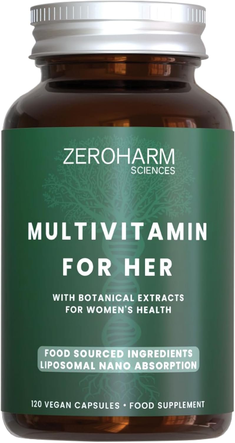 ZeroHarm Women’s Multivitamin – Plant-Based Formula with Vitamins A, B, C, D3, Iron & Zinc – Liposomal Absorption – Powered by Real Food Ingredients – 120 Vegan Capsules