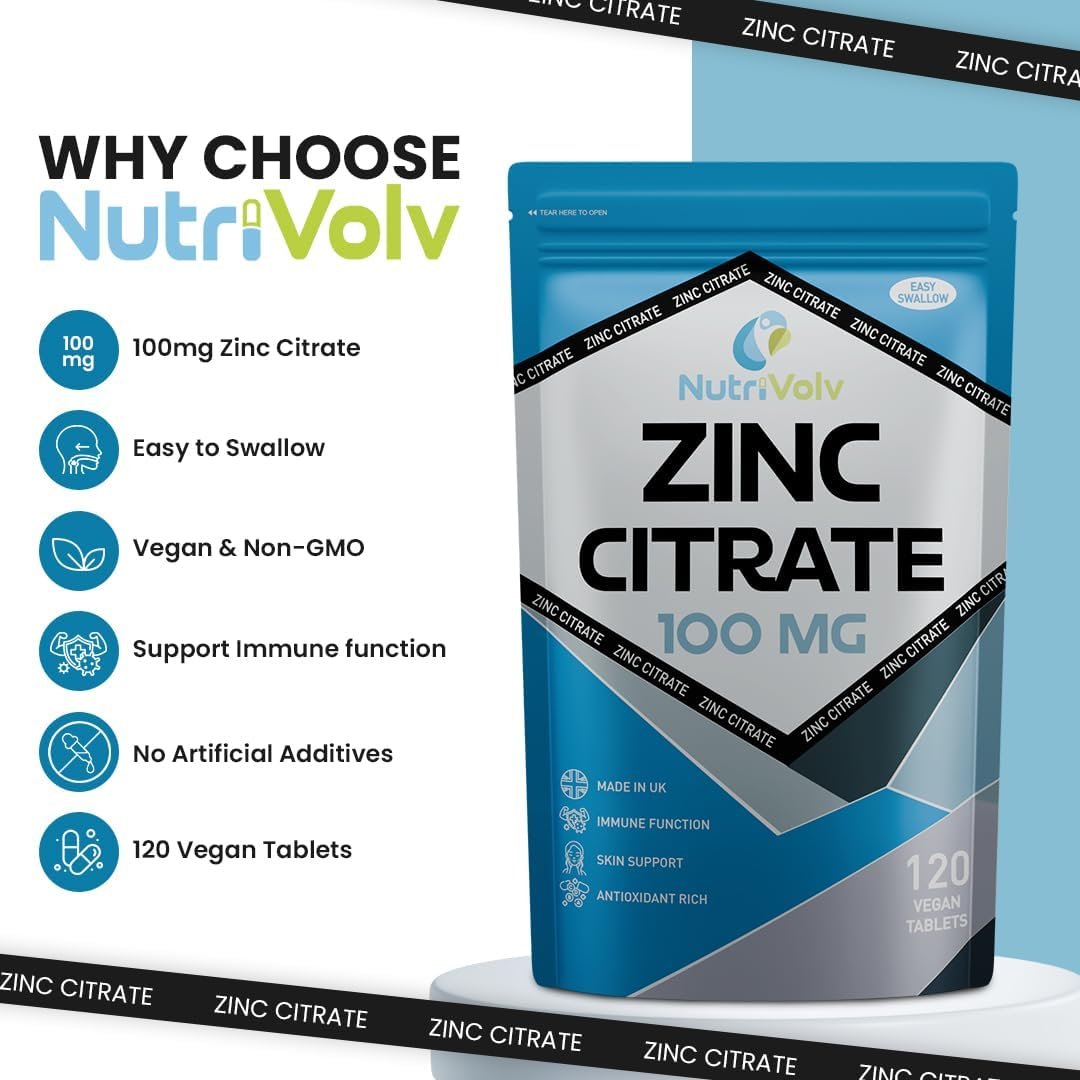 Zinc Citrate 100mg Supplements Immune Health Fertility Vision Acne Skin Hair | 120 Tablets