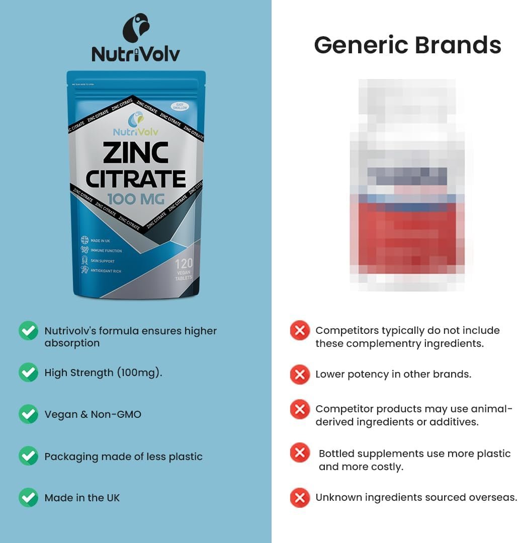 MATERIAL & FORMULATION: Our Zinc Citrate 100mg is a higher strength of many other competing brands like solgar zinc and solgar vitamin c in just one capsule. Each serving of 1 ultra-small tablet provides 100mg Zinc in the form of Zinc Citrate, which is equivalent to 500% NRV. Each pack contains 120 Zinc tablets high strength that will last for 4 months.