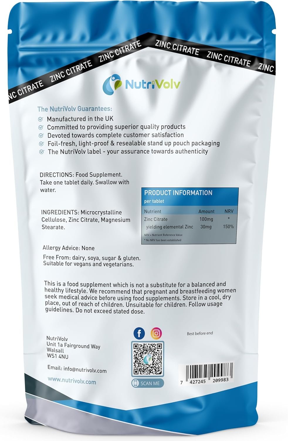 Benefits: Boosts the Immune System. Zinc Citrate 100mg helps the body to make proteins and DNA, and it’s needed for proper growth and development, too, according to the NIH. Zinc deficiency in children can lead to failure to thrive, and zinc supplements help in these cases. Zinc tablets promote healthy skin, hair and nails and exerts antioxidant activity, which helps fight free radicals.