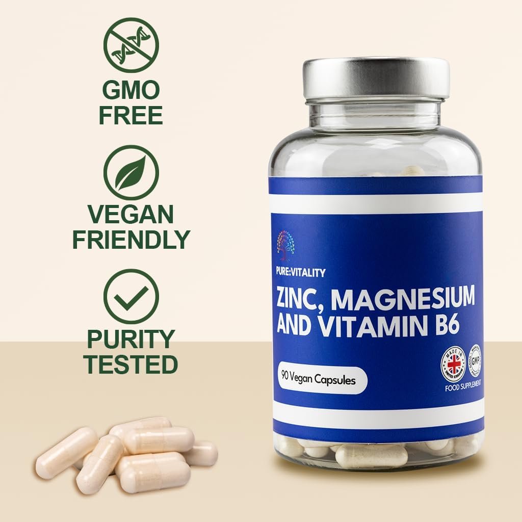 ZINC + Magnesium + Vitamin B6 Supplement for Men & Women – 90 Capsules – High Strength Muscle Sleep Aid & Muscle Recovery – (90 Day Supply) – UK GMP Certified Manufacturer