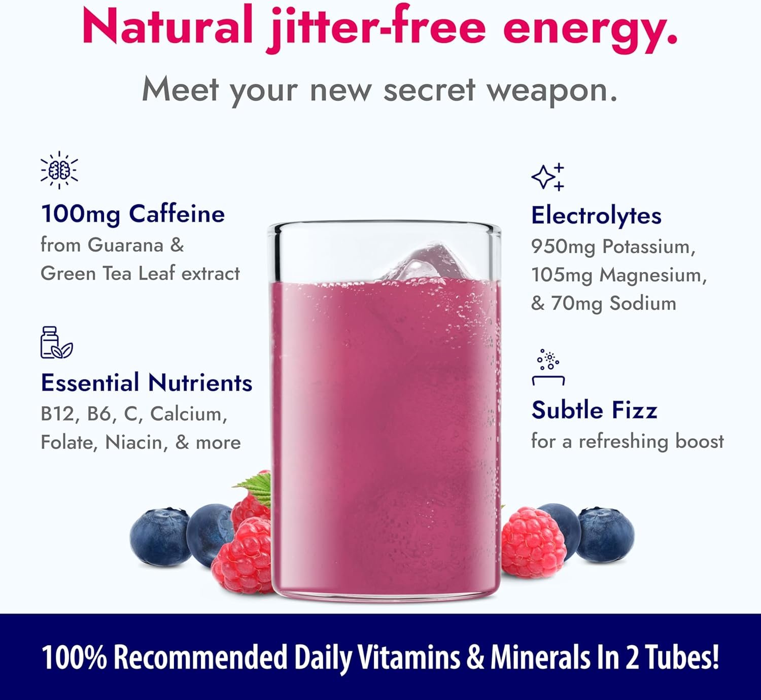 Packed with Vitamins and Natural Electrolytes – Our comprehensive formula contains 100% of recommended daily vitamins in two tubes, including 500mg of Vitamin C, 950mg of Potassium, 2500mcg of B12, and 105mg of Magnesium. Zero sugar, no artificial flavors or colors, no preservatives, and gluten free.