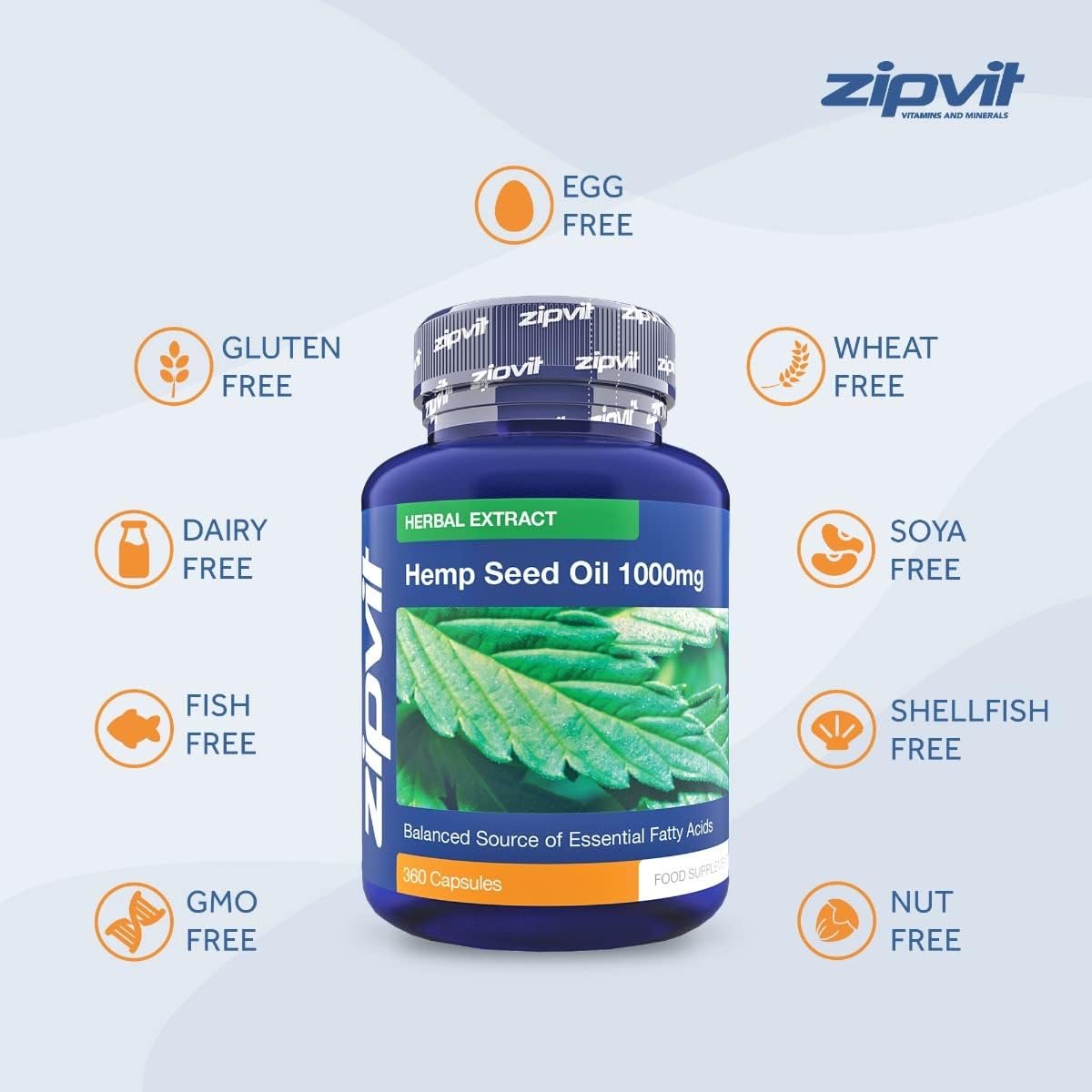 Zipvit Hemp Oil 1000mg Supplement, 360 Softgel Capsules of Hemp Seed Oil. 12 Months Supply.