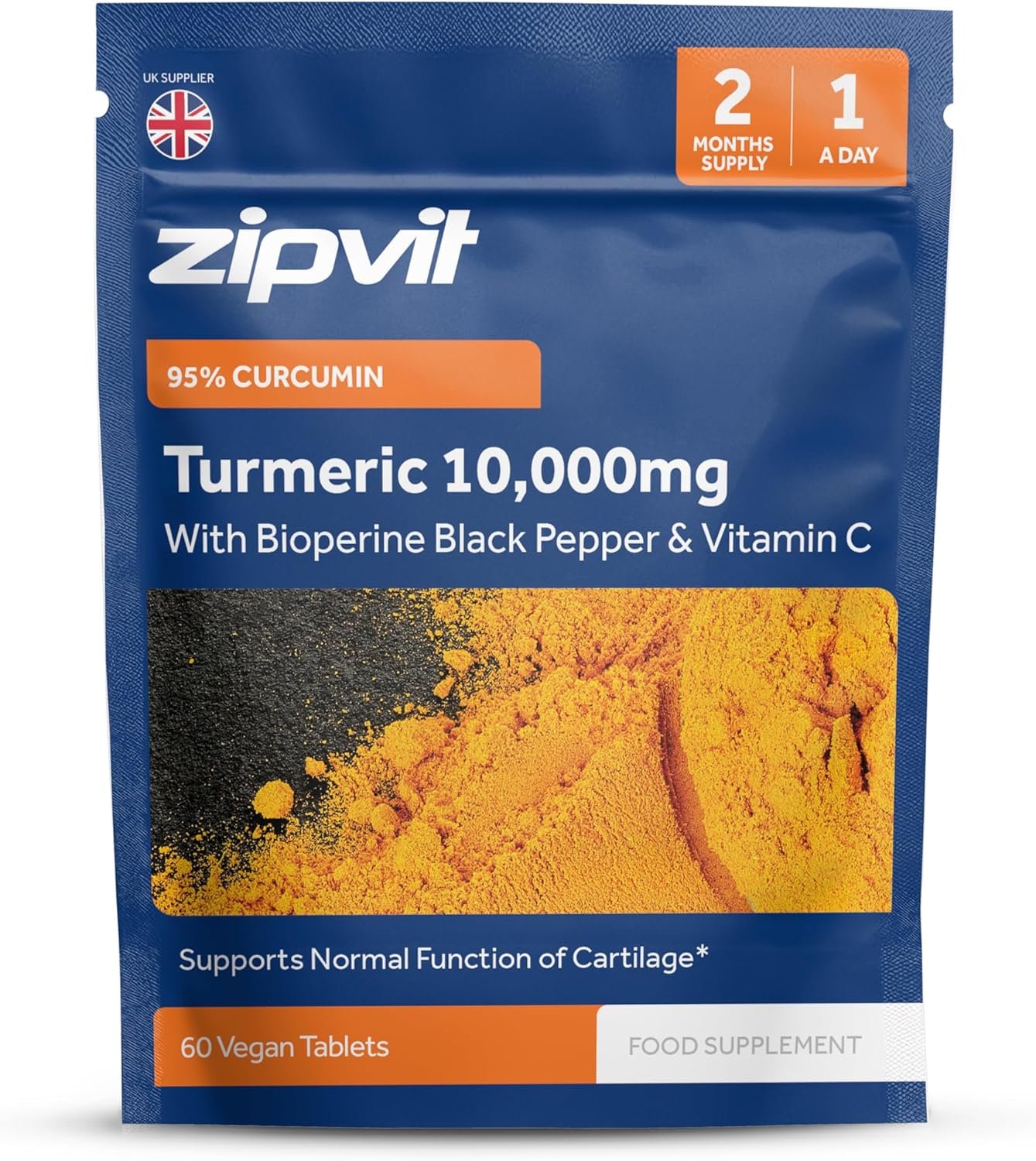 Zipvit Turmeric Tablets 10,000mg Providing 95% Active Curcumin with Bioperine Black Pepper & Vitamin C, 60 Vegan Tablets, 1 a Day, 2 Month Supply